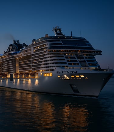 Con más de 181 mil toneladas brutas y capacidad para más de seis mil pasajeros, el MSC Virtuosa es una verdadera ciudad flotante. Entre sus lujos destacan restaurantes temáticos, áreas de entretenimiento, un parque acuático y el exclusivo MSC Yacht Club. En 2024, el barco fue escenario de la serie británica "The Good Ship Murder", una coincidencia que hoy cobra un significado inquietante.